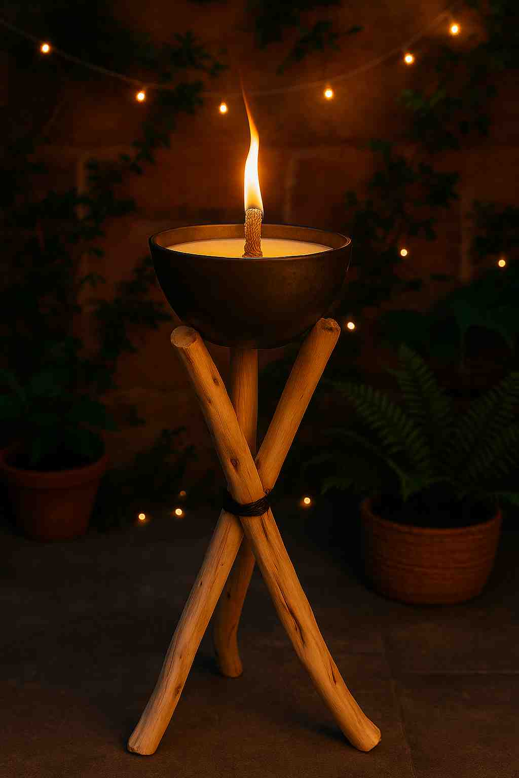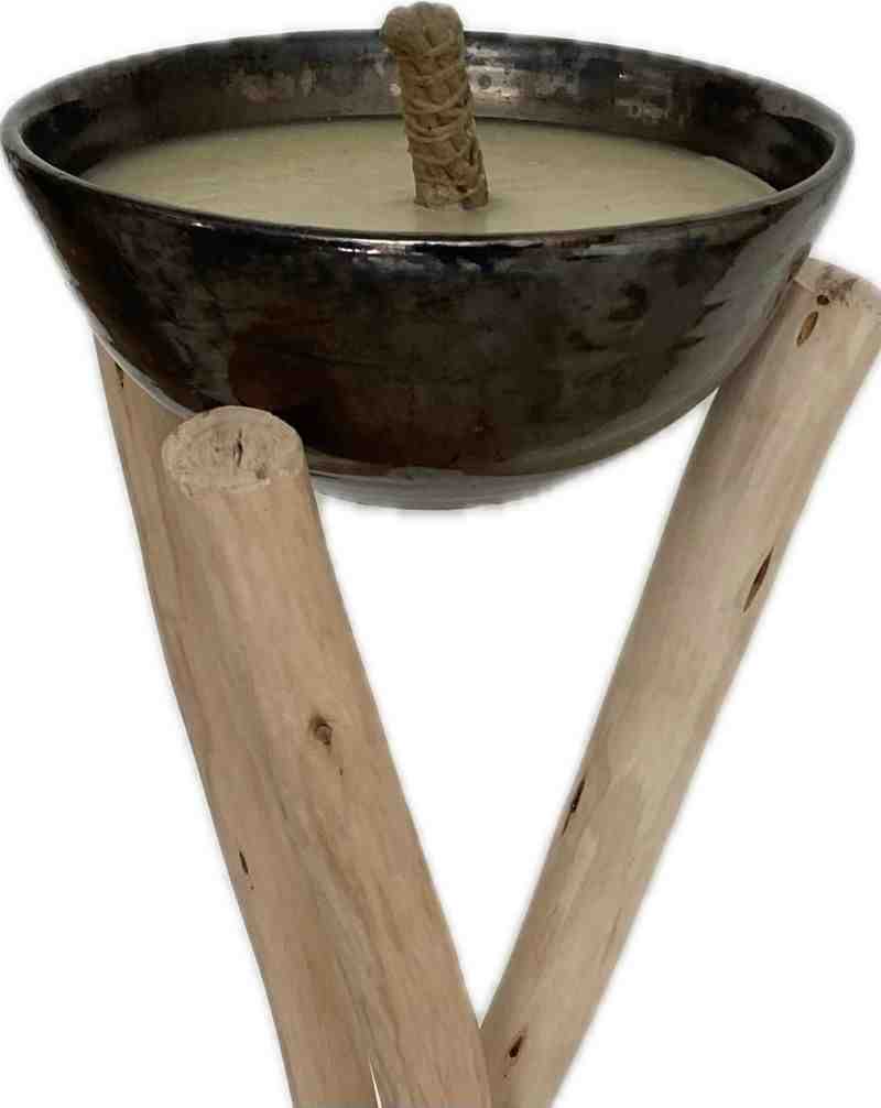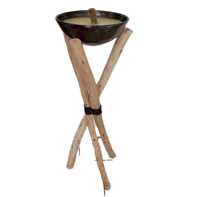 Apportez une touche d’authenticité et d’élégance à vos extérieurs avec notre bougie à la citronnelle sur trépied artisanal.